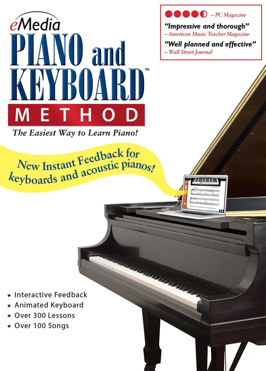 This new version of eMedia Piano & Keyboard Method offers everything you need to learn how to play! Piano instructor, Irma Irene Justicia, M.A., who has taught at the renowned Juilliard School of Music, guides you through over 300 step-by-step full-screen lessons. New Instant Feedback works with both electronic keyboards and acoustic pianos! It listens as you play melodies and shows whether you’re playing correctly! The lessons start with the basics, such as hand position, rhythm, and playing on black keys, and move on to reading music notation, sight reading, scales, and much more. Techniques are demonstrated with over 70 videos viewable in full-screen mode. Learn songs and exercises from music notation as an animated keyboard guides you through fingerings. Songs and exercises are provided as both live-recorded audio and variable-speed MIDI tracks which let you slow the music down as needed. Colorful MIDI accompaniments help make practicing fun! You will learn over 100 popular classical, blues, pop, and rock songs, including hit songs from artists such as Billy Joel, Bob Dylan, and Elton John! Interactive review and ear training quizzes help reinforce new concepts and develop your ear. When used with an electronic MIDI keyboard, you get Interactive Evaluation Feedback with detailed specifics on your playing, including which notes and rhythms were wrong and how to correct them. In addition, the new Note Tracker shows you what note you’re playing and makes learning music notation easy. This latest version also offers fully scalable lesson screens and an option for full-screen video. Other accessories include a built-in digital metronome and a recorder. eMedia Piano & Keyboard Method is the ultimate way to learn how to play piano or keyboard!